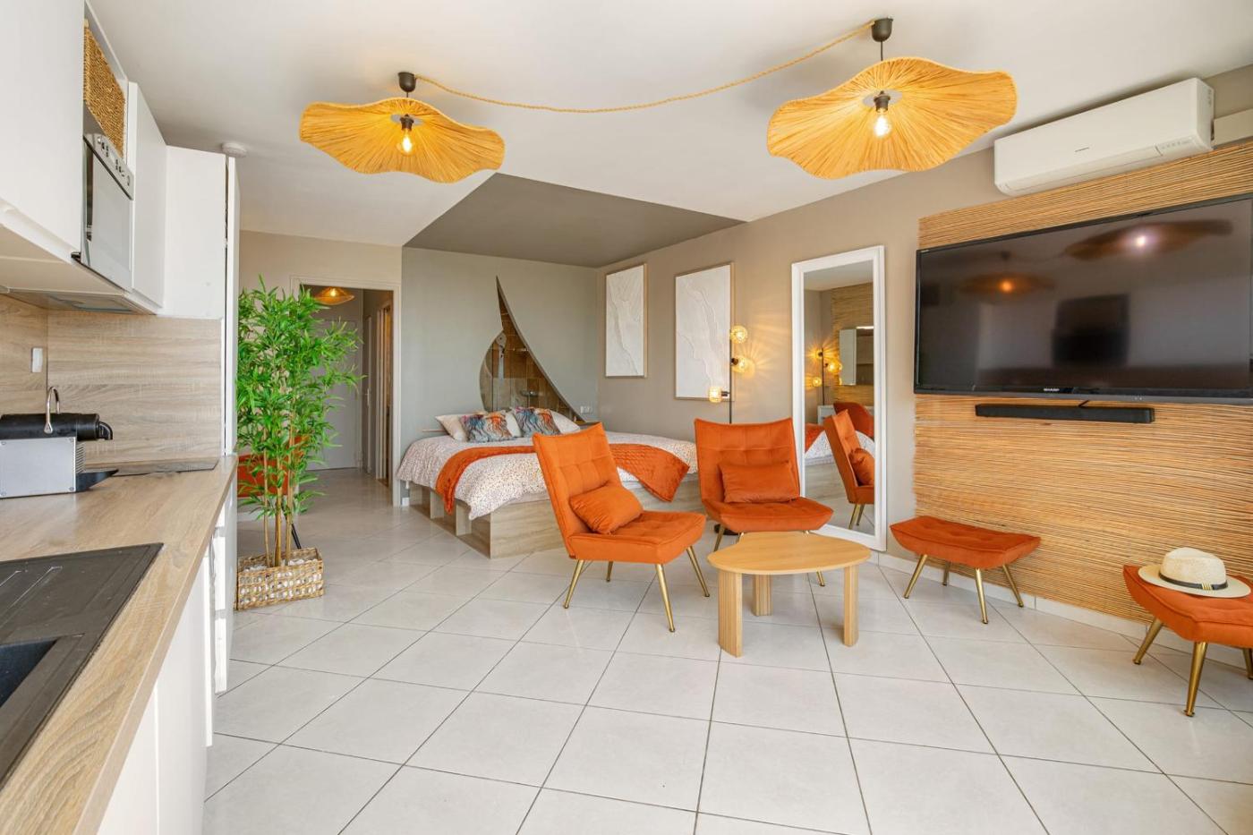 In the Naturist Village district of Cap dAgde, close to Plage Naturiste dAgde, Bohème Heliopolis features a casino and a washing machine. This apartment offers free private parking and a lift.