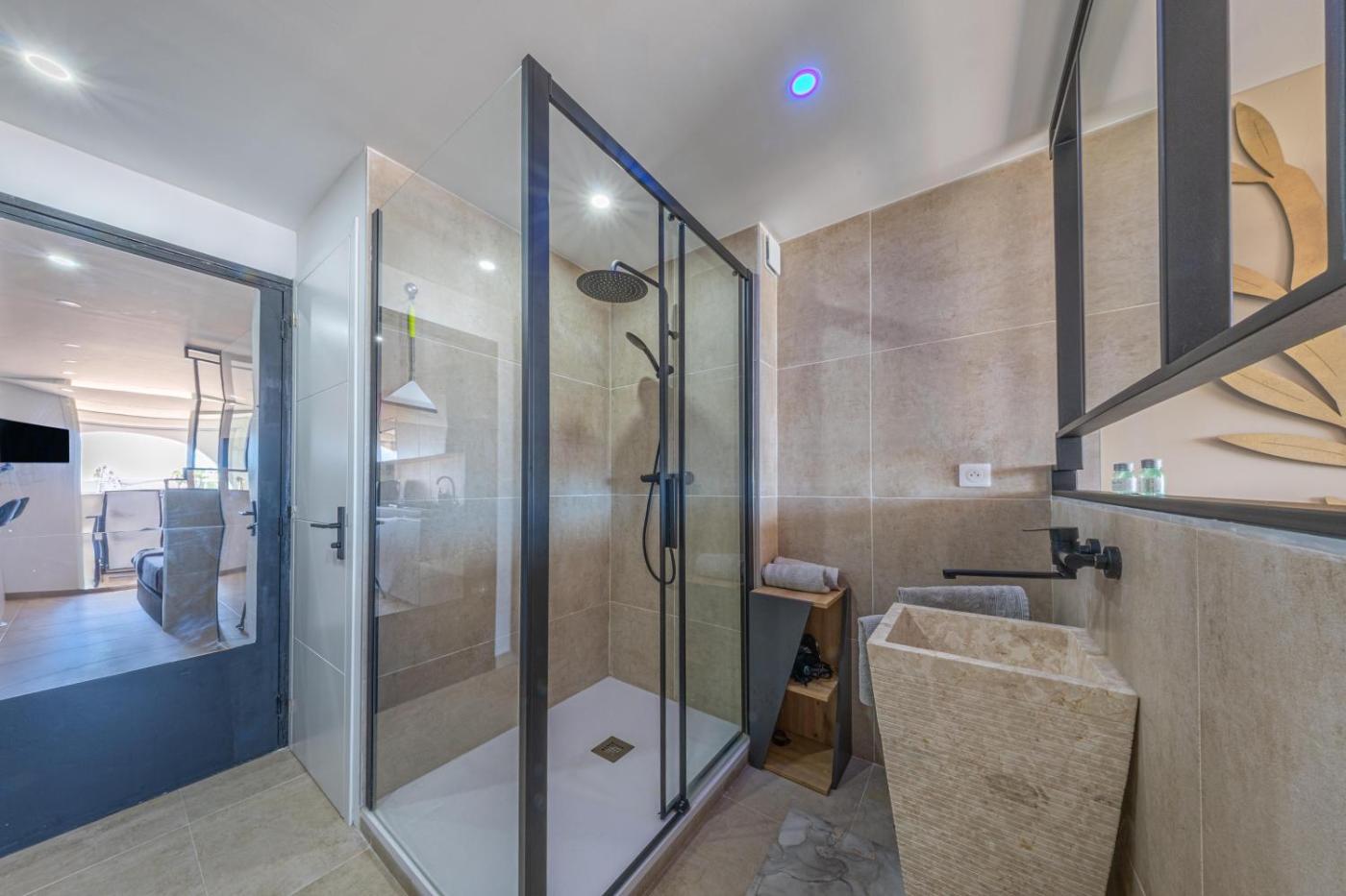 One-Bedroom Apartment. Guests will have a special experience as the apartment features a private pool. The air-conditioned apartment has 1 bedroom and 1 bathroom with a shower and a hairdryer. The fully equipped kitchen features a stovetop, a refrigerator, kitchenware and a microwave. Boasting a terrace, this apartment also offers a coffee machine, a dining area and a flat-screen TV. The unit has 1 bed.