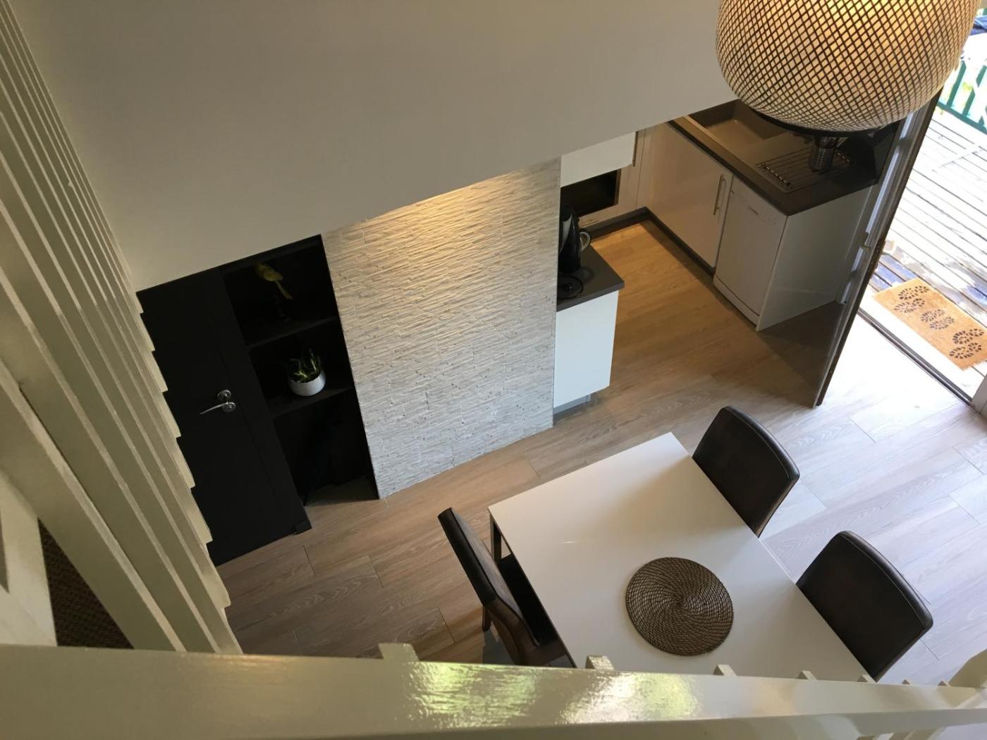 Apartment - Split Level. This apartment consists of 1 living room, 2 separate bedrooms and 1 bathroom with a walk-in shower and a hairdryer. Guests can make meals in the kitchenette that is equipped with a stovetop, a refrigerator, a dishwasher and kitchenware. The apartment features parquet floors, a seating area with a flat-screen TV, a washing machine, soundproof walls as well as pool views. The unit offers 3 beds.
