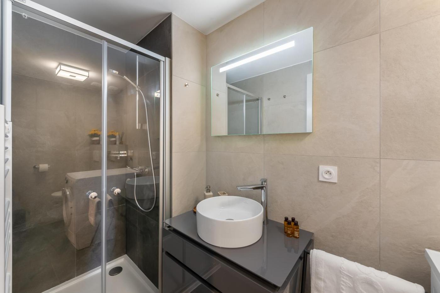 Two-Bedroom Apartment. The apartment features 2 bedrooms, 2 bathrooms and a kitchen. The apartments kitchen is available for cooking and storing food. The spacious apartment provides a washing machine, heating and a terrace. The unit offers 3 beds.