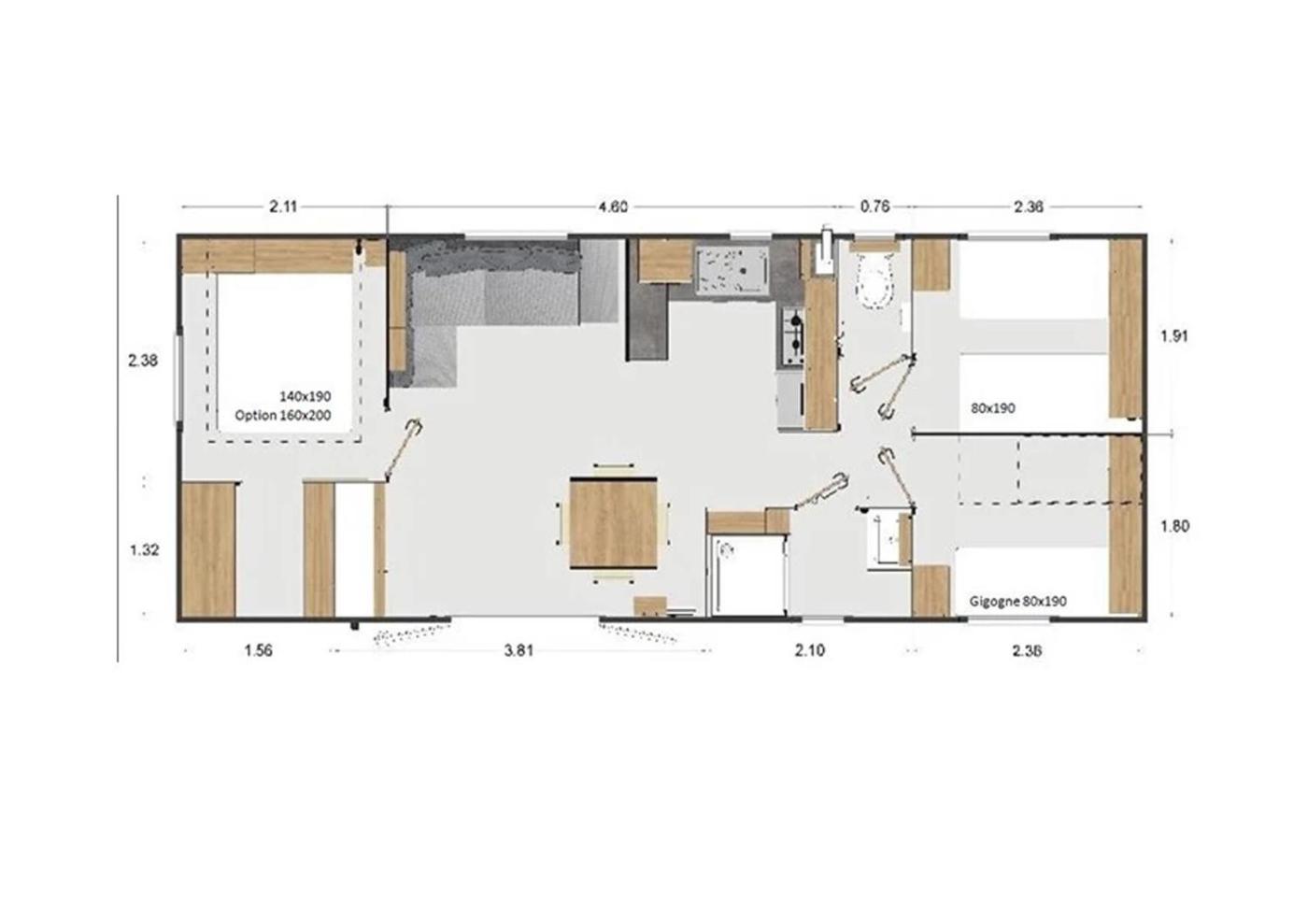 Mobile Home. Featuring a private entrance, this air-conditioned mobile home comprises 1 living room, 3 separate bedrooms and 1 bathroom with a shower and a hairdryer. Boasting a terrace with lake views, this mobile home also provides a washing machine and a flat-screen TV. The unit offers 8 beds.