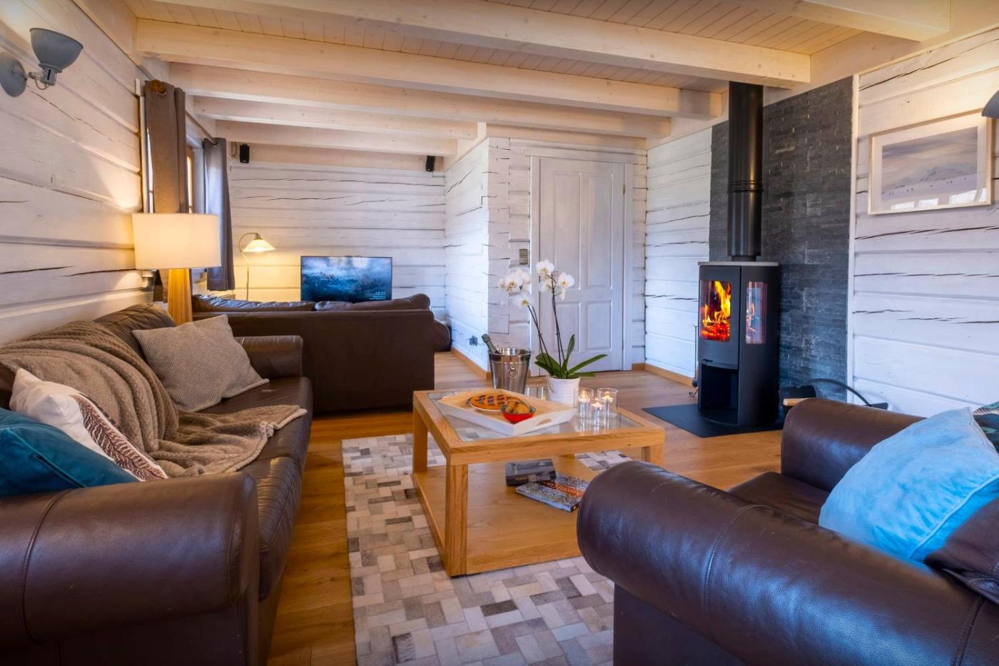 Chalet. Guests will have a special experience as this chalet features a hot tub and a fireplace. Featuring a private entrance, this spacious chalet also consists of 3 bedrooms, a seating area and 2 bathrooms with a bath and a shower. Guests will find a stovetop, a refrigerator, a dishwasher and kitchenware in the well-fitted kitchen. The chalet also offers a barbecue. Boasting a terrace with mountain views, this chalet also provides a washing machine and a TV with streaming services. The unit offers 4 beds.
