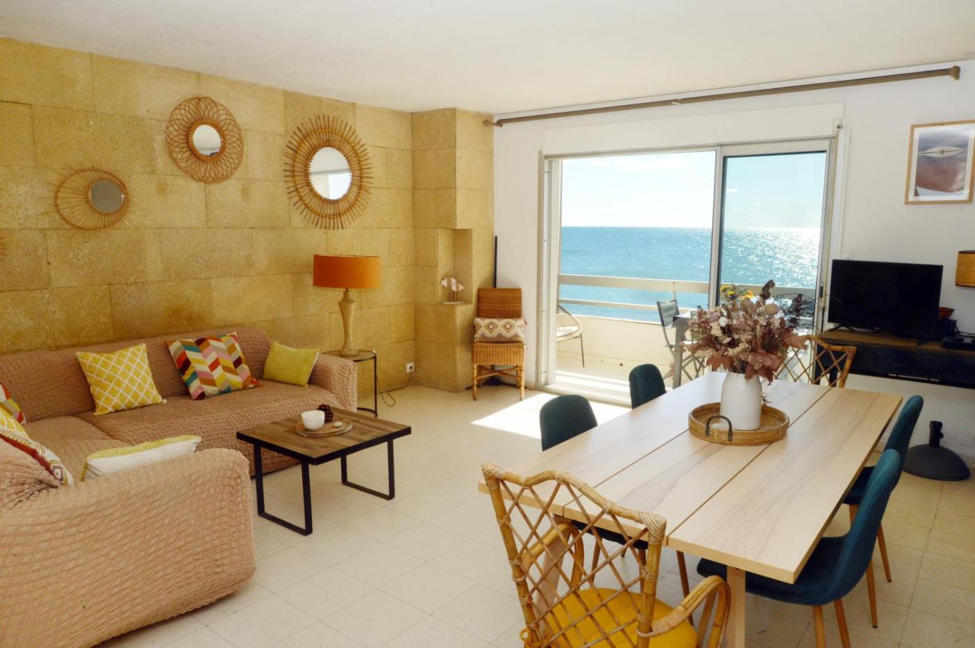 The spacious apartment has 4 bedrooms, 1 bathroom, bed linen, towels, a flat-screen TV, a dining area, a fully equipped kitchen, and a terrace with sea views.