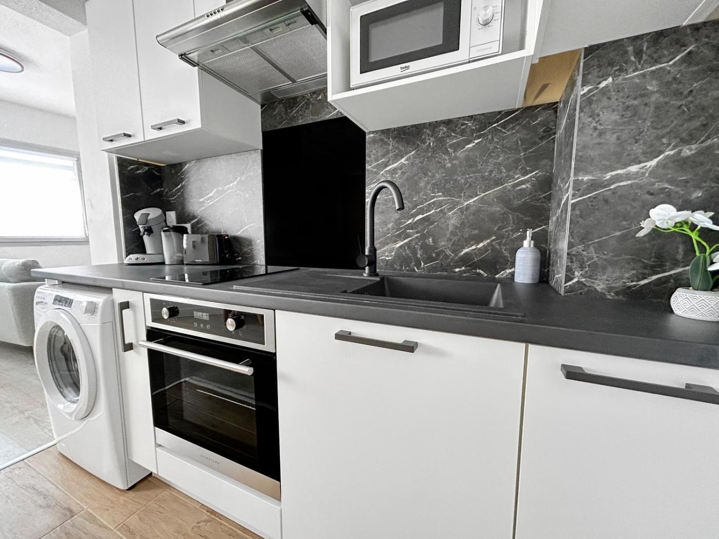 One-Bedroom Apartment. Boasting a private entrance, this apartment comes with 1 living room, 1 separate bedroom and 1 bathroom with a shower and a hairdryer. In the kitchen, guests will find a stovetop, a refrigerator, kitchenware and an oven. The apartment features a washing machine, a coffee machine, a seating area, a dining area, as well as a flat-screen TV. The unit has 1 bed.